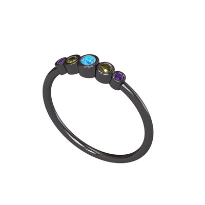 Akuamarin, peridot ve ametist 925 ayar siyah rodyum kaplama gümüş yüzük