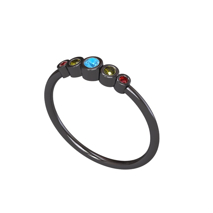 Akuamarin, peridot ve garnet 925 ayar siyah rodyum kaplama gümüş yüzük