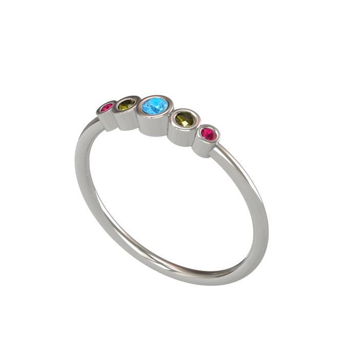 Akuamarin, peridot ve rodolit garnet 925 ayar gümüş yüzük