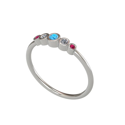 Akuamarin, pırlanta ve rodolit garnet 18 ayar beyaz altın yüzük (0.072 karat)
