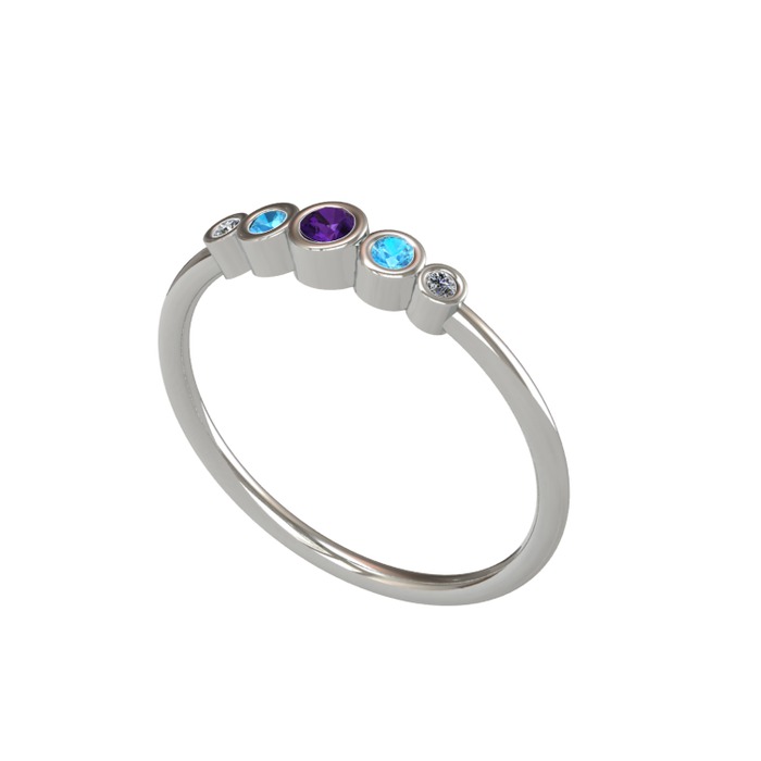 Ametist, akuamarin ve elmas 14 ayar beyaz altın yüzük (0.03 karat)