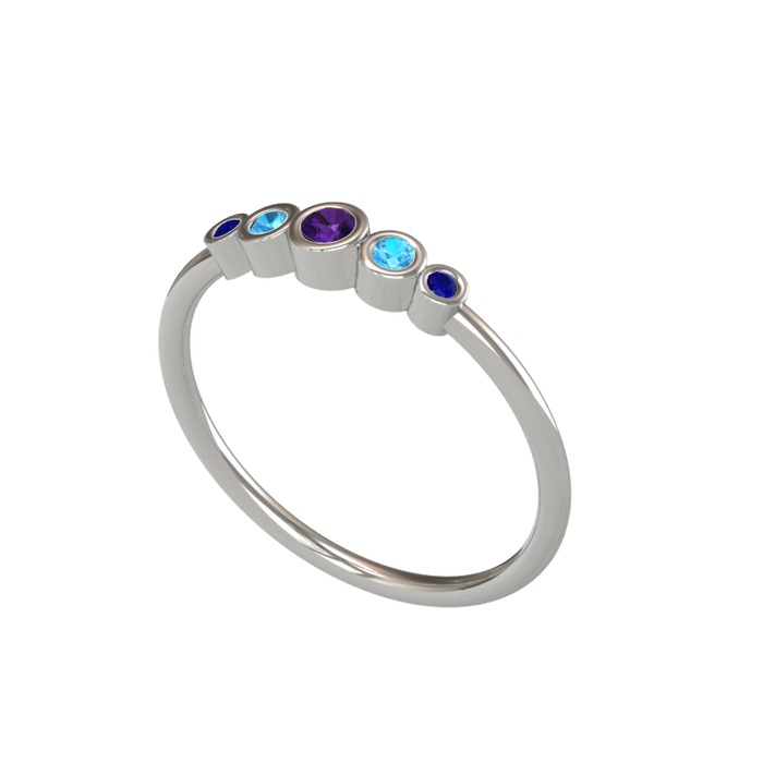 Ametist, akuamarin ve lab safir 8 ayar beyaz altın yüzük