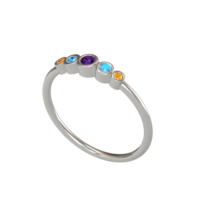 Ametist, akuamarin ve sitrin 18 ayar beyaz altın yüzük