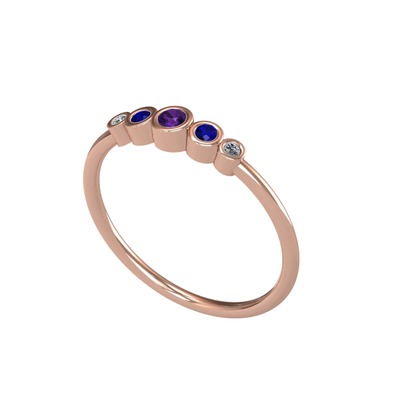 Ametist, lab safir ve elmas 8 ayar rose altın yüzük (0.03 karat)