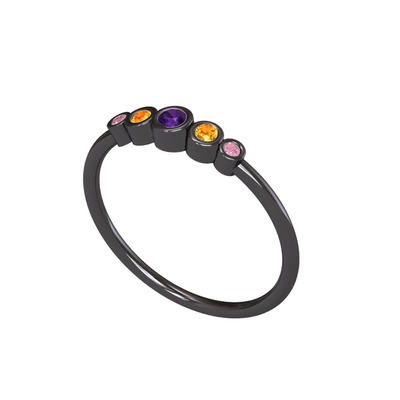 Ametist, sitrin ve pembe kuvars 925 ayar siyah rodyum kaplama gümüş yüzük