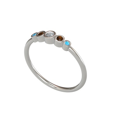 Beyaz zirkon, dumanlı kuvars ve akuamarin 18 ayar beyaz altın yüzük