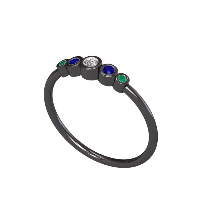 Beyaz zirkon, lab safir ve kök zümrüt 925 ayar siyah rodyum kaplama gümüş yüzük