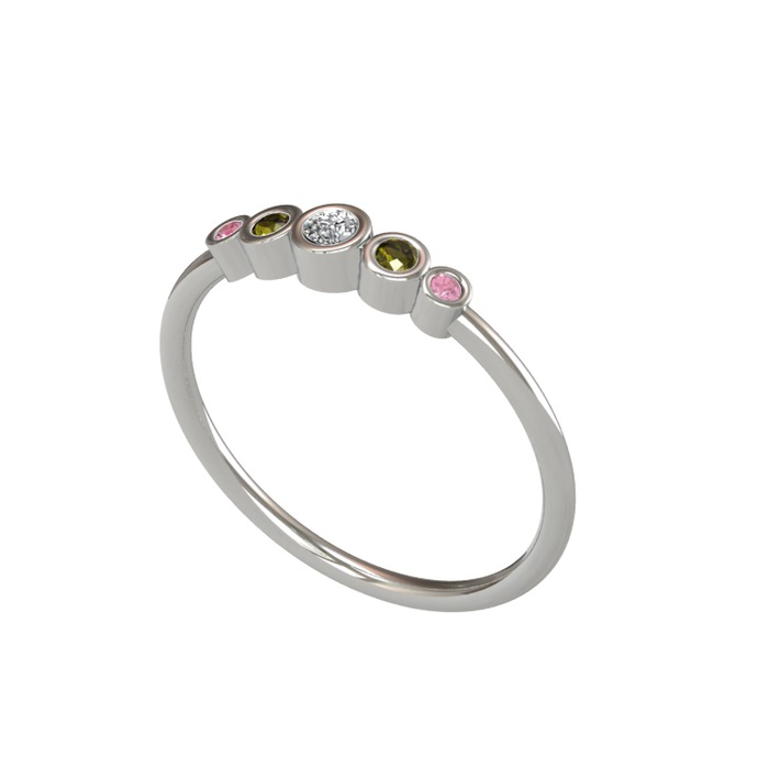 Beyaz zirkon, peridot ve pembe kuvars 925 ayar gümüş yüzük