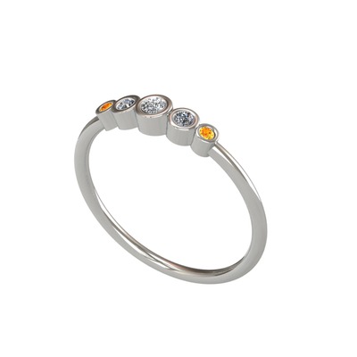 Beyaz zirkon, pırlanta ve sitrin 925 ayar gümüş yüzük (0.072 karat)