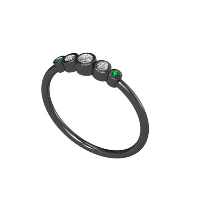 Beyaz zirkon, swarovski ve yeşil kuvars 925 ayar siyah rodyum kaplama gümüş yüzük
