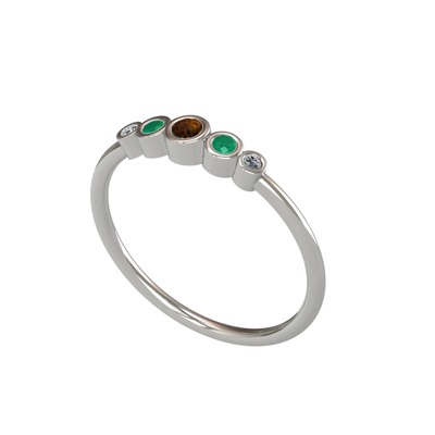 Dumanlı kuvars, kök zümrüt ve elmas 14 ayar beyaz altın yüzük (0.03 karat)