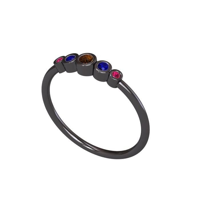 Dumanlı kuvars, lab safir ve rodolit garnet 925 ayar siyah rodyum kaplama gümüş yüzük