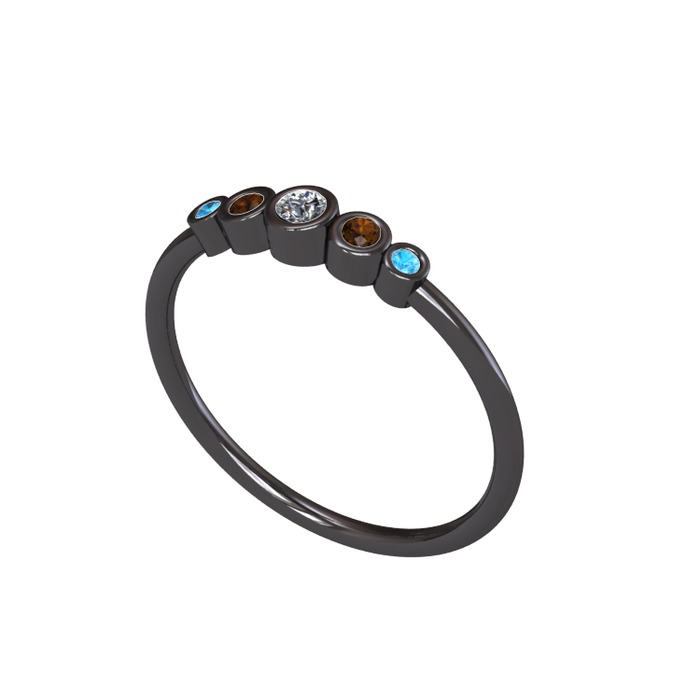 Elmas, dumanlı kuvars ve akuamarin 925 ayar siyah rodyum kaplama gümüş yüzük (0.06 karat)