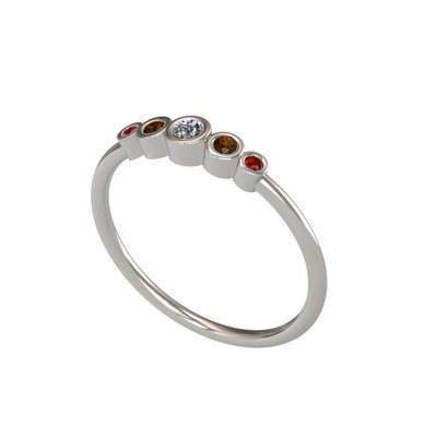 Elmas, dumanlı kuvars ve garnet 925 ayar gümüş yüzük (0.06 karat)