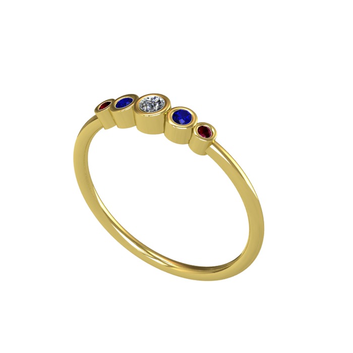 Elmas, lab safir ve kök yakut 18 ayar altın yüzük (0.06 karat)