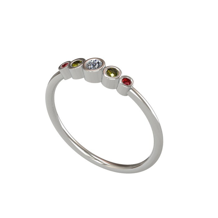 Elmas, peridot ve garnet 8 ayar beyaz altın yüzük (0.06 karat)