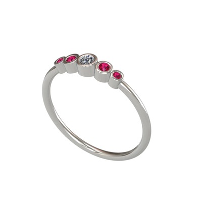 Elmas ve rodolit garnet 14 ayar beyaz altın yüzük (0.06 karat)