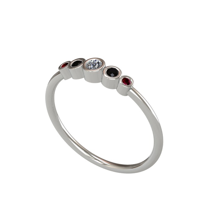 Elmas, siyah zirkon ve kök yakut 8 ayar beyaz altın yüzük (0.06 karat)