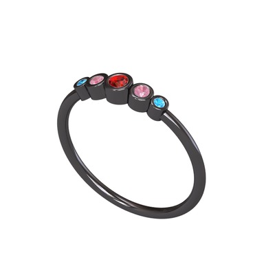 Garnet, pembe kuvars ve akuamarin 925 ayar siyah rodyum kaplama gümüş yüzük