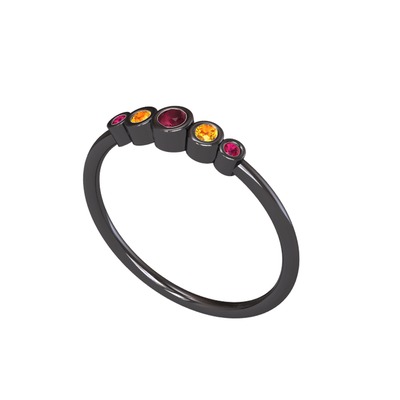 Kök yakut, sitrin ve rodolit garnet 925 ayar siyah rodyum kaplama gümüş yüzük