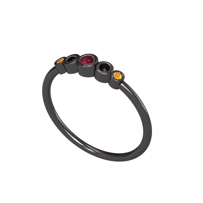Kök yakut, siyah zirkon ve sitrin 925 ayar siyah rodyum kaplama gümüş yüzük