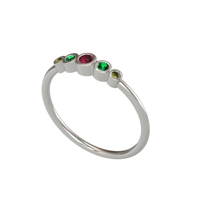 Kök yakut, yeşil kuvars ve peridot 18 ayar beyaz altın yüzük