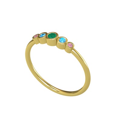 Kök zümrüt, akuamarin ve pembe kuvars 925 ayar altın kaplama gümüş yüzük