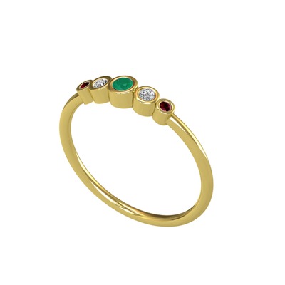 Kök zümrüt, beyaz zirkon ve kök yakut 925 ayar altın kaplama gümüş yüzük