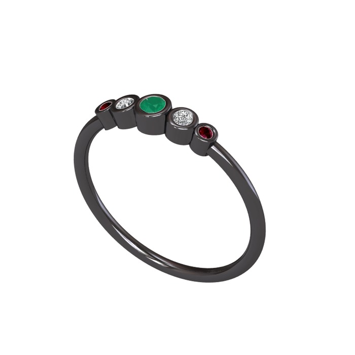 Kök zümrüt, beyaz zirkon ve kök yakut 925 ayar siyah rodyum kaplama gümüş yüzük