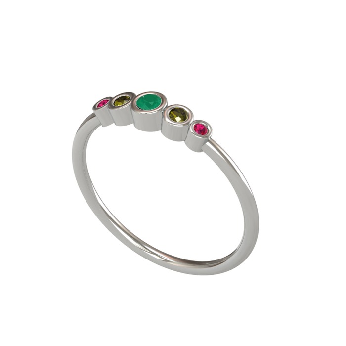Kök zümrüt, peridot ve rodolit garnet 8 ayar beyaz altın yüzük