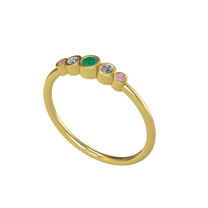 Kök zümrüt, pırlanta ve pembe kuvars 18 ayar altın yüzük (0.072 karat)