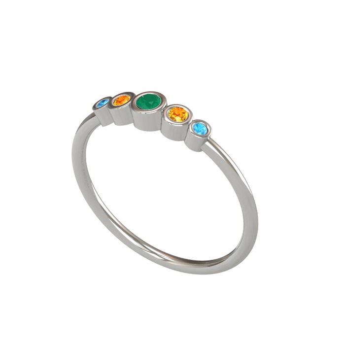 Kök zümrüt, sitrin ve akuamarin 18 ayar beyaz altın yüzük