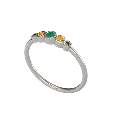 Kök zümrüt, sitrin ve peridot 14 ayar beyaz altın yüzük