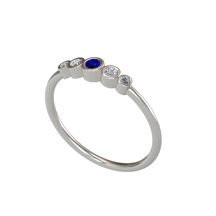 Lab safir, beyaz zirkon ve elmas 8 ayar beyaz altın yüzük (0.03 karat)