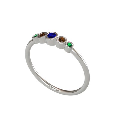 Lab safir, dumanlı kuvars ve yeşil kuvars 925 ayar gümüş yüzük