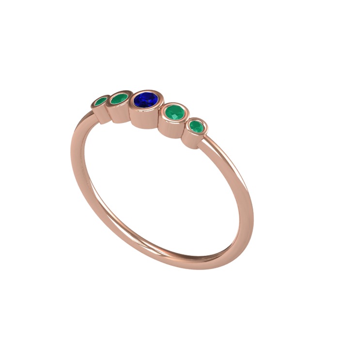 Lab safir ve kök zümrüt 18 ayar rose altın yüzük