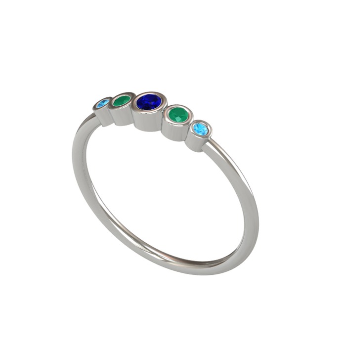 Lab safir, kök zümrüt ve akuamarin 18 ayar beyaz altın yüzük