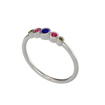 Lab safir, rodolit garnet ve peridot 925 ayar gümüş yüzük