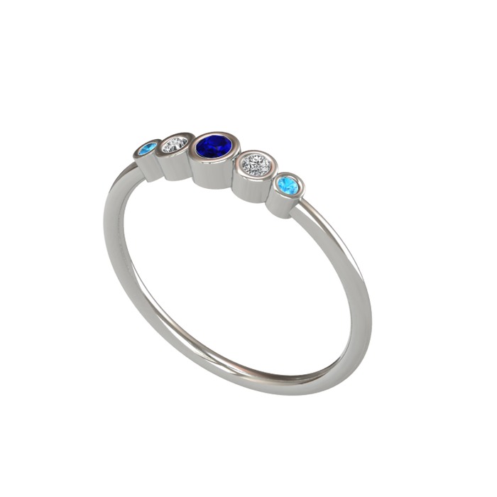 Lab safir, swarovski ve akuamarin 18 ayar beyaz altın yüzük