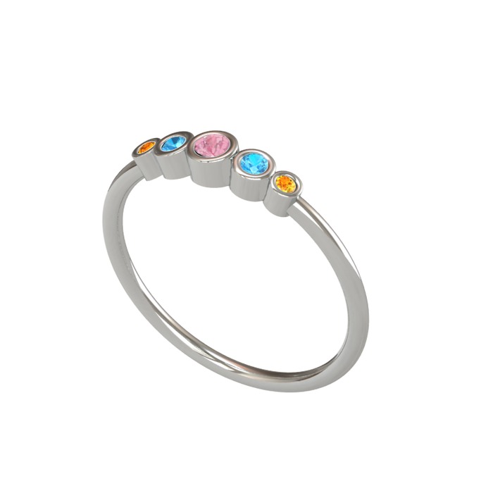 Pembe kuvars, akuamarin ve sitrin 925 ayar gümüş yüzük
