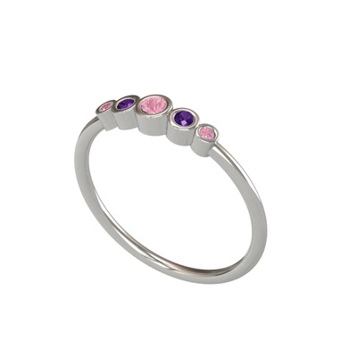 Pembe kuvars ve ametist 925 ayar gümüş yüzük