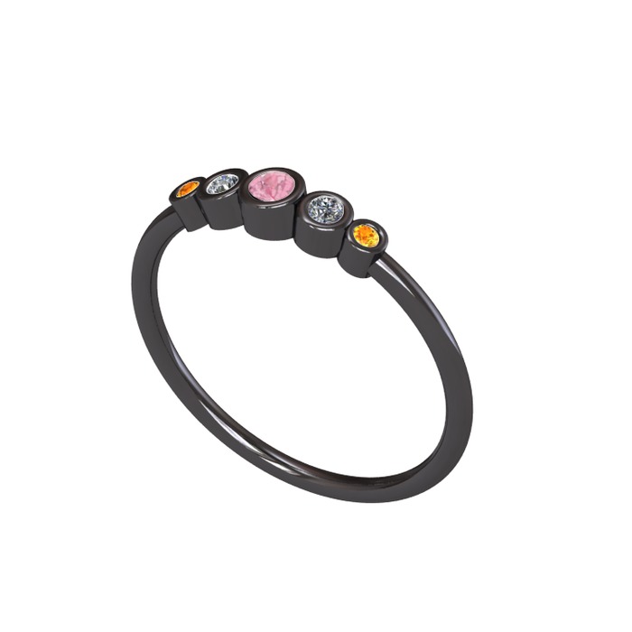 Pembe kuvars, pırlanta ve sitrin 925 ayar siyah rodyum kaplama gümüş yüzük (0.072 karat)