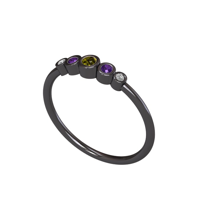 Peridot, ametist ve swarovski 925 ayar siyah rodyum kaplama gümüş yüzük