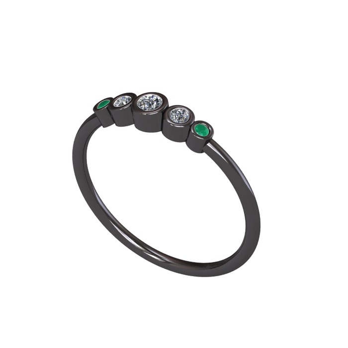 Pırlanta, elmas ve kök zümrüt 925 ayar siyah rodyum kaplama gümüş yüzük (0.132 karat)