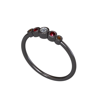 Pırlanta, kök yakut ve dumanlı kuvars 925 ayar siyah rodyum kaplama gümüş yüzük (0.06 karat)