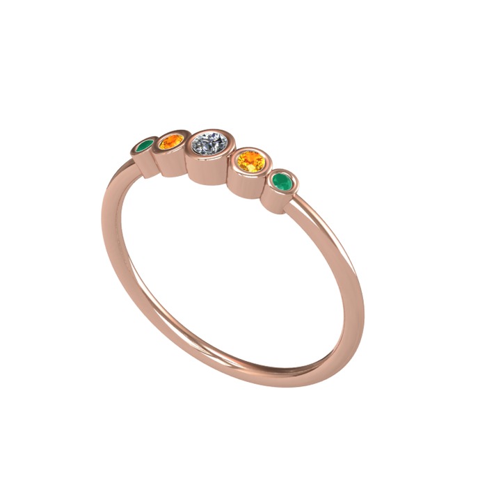 Pırlanta, sitrin ve kök zümrüt 8 ayar rose altın yüzük (0.06 karat)