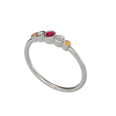 Rodolit garnet, beyaz zirkon ve sitrin 925 ayar gümüş yüzük