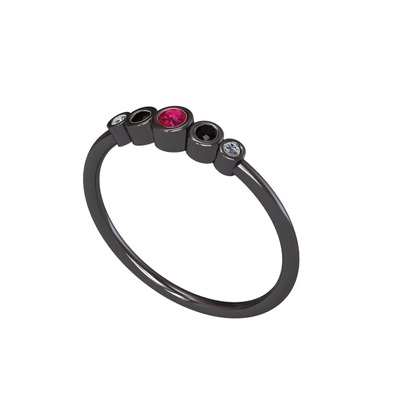 Rodolit garnet, siyah zirkon ve elmas 925 ayar siyah rodyum kaplama gümüş yüzük (0.03 karat)