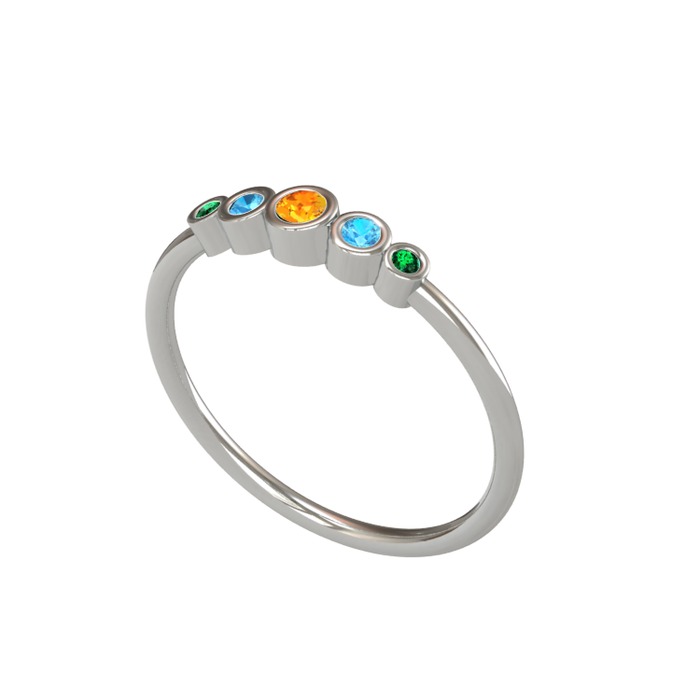 Sitrin, akuamarin ve yeşil kuvars 8 ayar beyaz altın yüzük