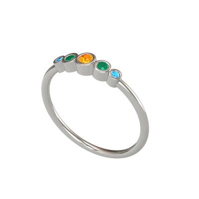 Sitrin, kök zümrüt ve akuamarin 18 ayar beyaz altın yüzük
